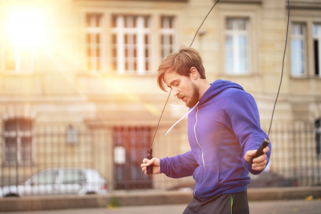 簡単ながら有酸素運動としても効果的。5分間ジャンプロープを続けることで、心肺機能を向上させつつ、全身の筋力もアップします。場所を取らないため、自宅でも手軽に行えます。